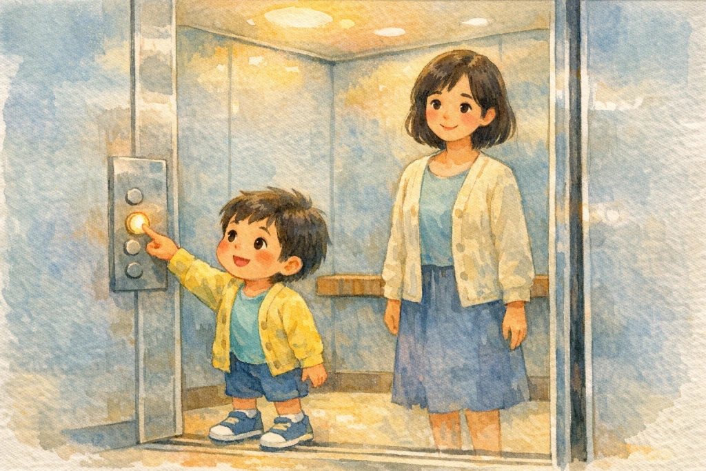 我和妈妈走进电梯,门轻轻合上了。我抬起手,按了一下想去的楼层。没过一会儿,脚下这个小房间就安安静静地动了起来。我立刻仰头问妈妈:“电梯为什么会自己往上走呀?”